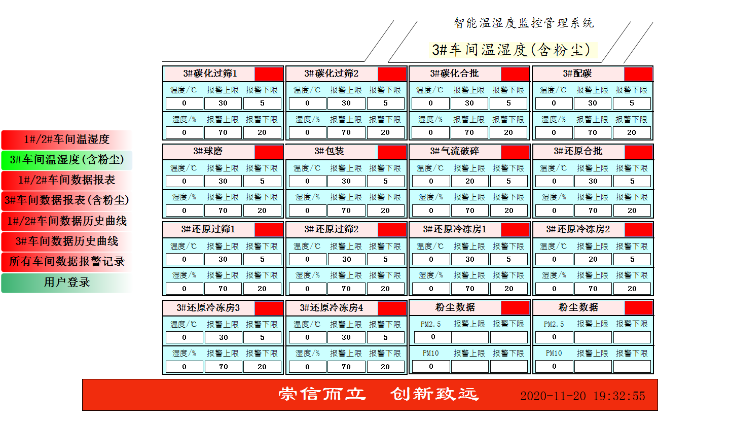 通過無(wú)線(Lora)傳輸,采集車間環(huán)境溫濕度和粉塵的數(shù)據(jù)并上傳到服務(wù)器電腦上,在服務(wù)器電腦上的平臺(tái)軟件上展示: