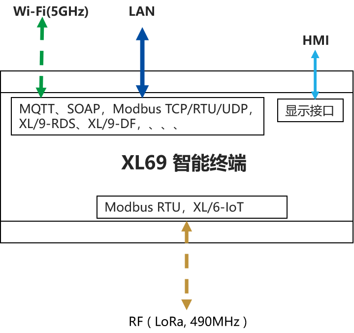 智能終端:XL69,協議轉換、數據處理、存貯;