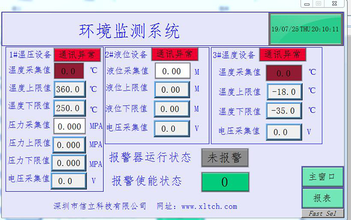 選擇深圳信立科技的XL871EIAS智能監控終端,作為值班室監控平臺。以圖、表形式展示各監測點的實時數據、設備狀態。當某監測點數值越限,平臺發出聲光報警信號。
