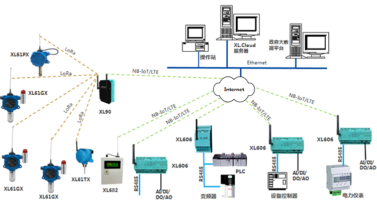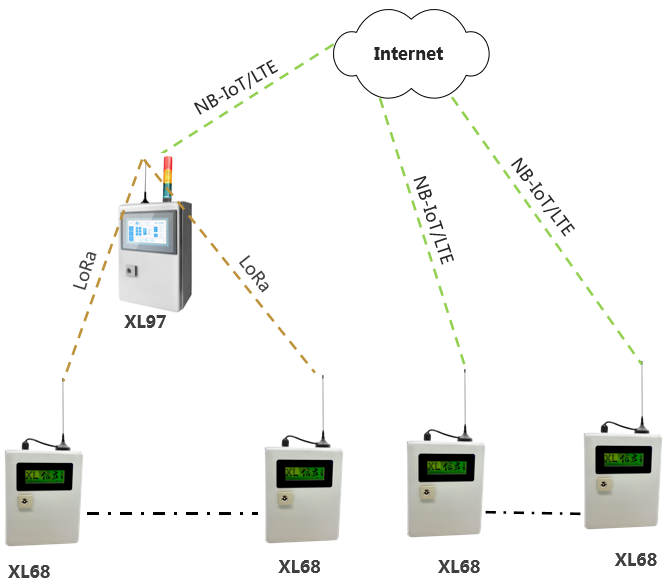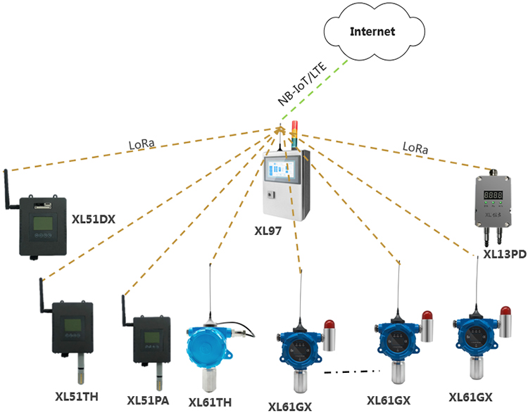 在一個監測點位置,需要監測多種環境參數,建議選擇XL68環境監測終端,同時采集多種環境參數,通過4G/NB推送至監控平臺;(也可選擇通過LoRa上傳到網關終端);