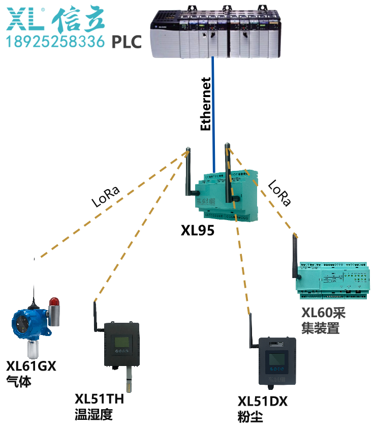 XL9X網(wǎng)關(guān),無線讀取采集節(jié)點的數(shù)據(jù),通過RS485,Ethernet轉(zhuǎn)發(fā)數(shù)據(jù)至PLC;