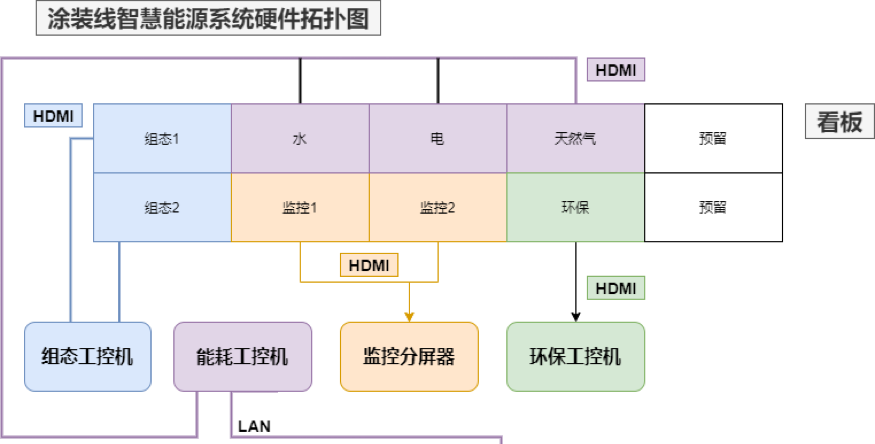 水、電、氣的消耗數(shù)據(jù),除在能源管理服務(wù)器上進(jìn)行展示、打印外,還要在展示大廳的65英寸的顯示器上進(jìn)行展示。展示要求示意圖如下