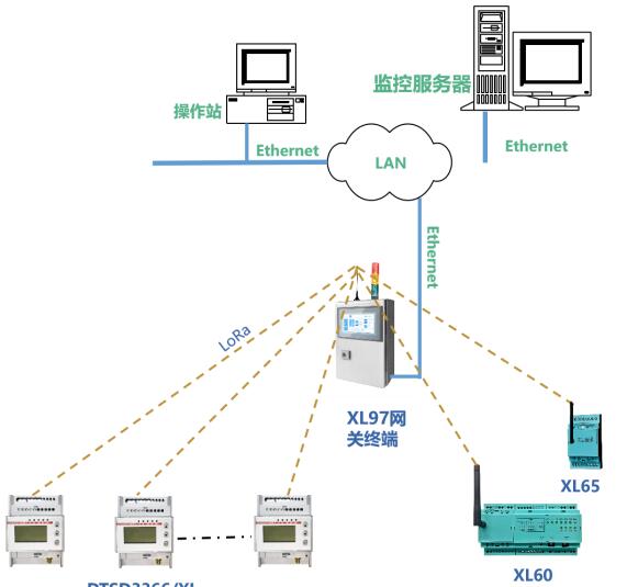 XL60無線上傳數(shù)據(jù)至現(xiàn)場(chǎng)監(jiān)控終端;或上傳至XL90物聯(lián)網(wǎng)關(guān)。