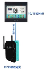 配置1臺XL90物聯(lián)網(wǎng)關(guān),作為系統(tǒng)通信核心,無線連接現(xiàn)場控制設(shè)備,通過以太網(wǎng)連接觸摸屏。