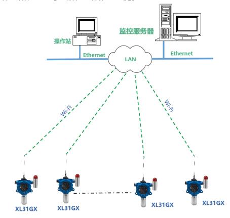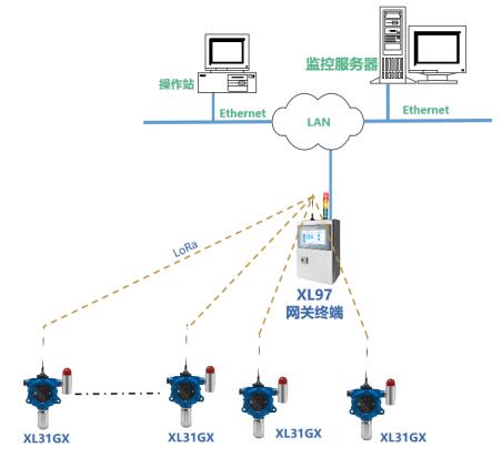 增加現場集中監視,可配XL97網關終端,讀取區域內氣體傳感器數據,分析處理、顯示、報警,并轉發至監控中心服務器。