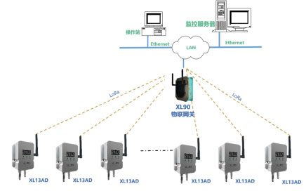XL13AD無線壓差傳感器通過LoRa無線傳輸數據至XL906物聯網關,網關可選Ethernet、Wi-Fi、4G等多種方式將壓差數據傳輸至監控平臺。