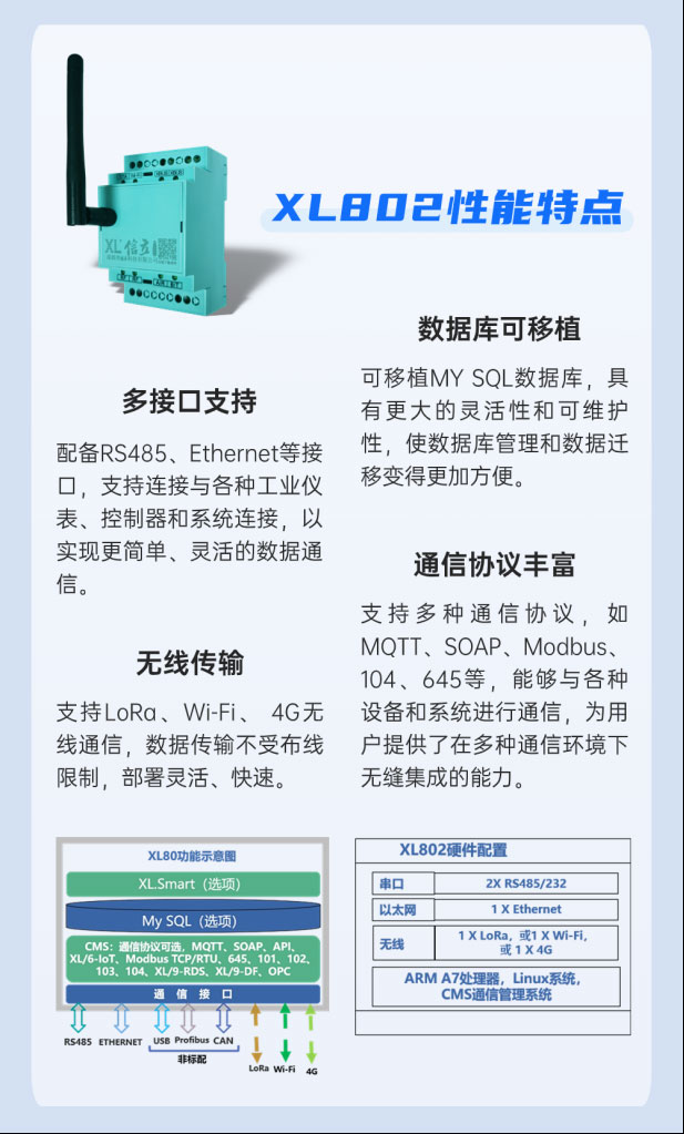 設(shè)備兼容性提升:XL802支持多種通信接口,具有強大的協(xié)議轉(zhuǎn)換功能,可以解決不同設(shè)備和MES之間通信協(xié)議不兼容的問題,使得各種接口類型的設(shè)備都能夠接入該系統(tǒng),大大提升了設(shè)備的兼容性;