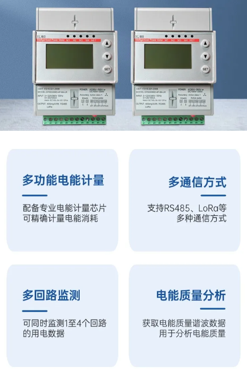 選擇DTSD3366XL無線多功能電表監測各節點用電能耗情況。