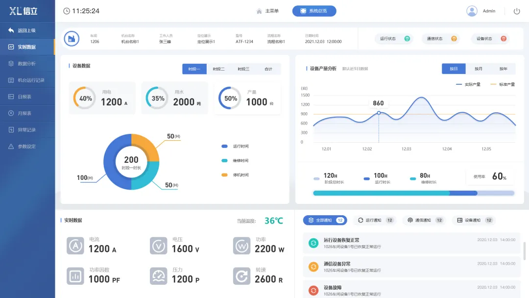 數據可視化:實現機器的電能消耗和生產運行數據的可視化呈現;